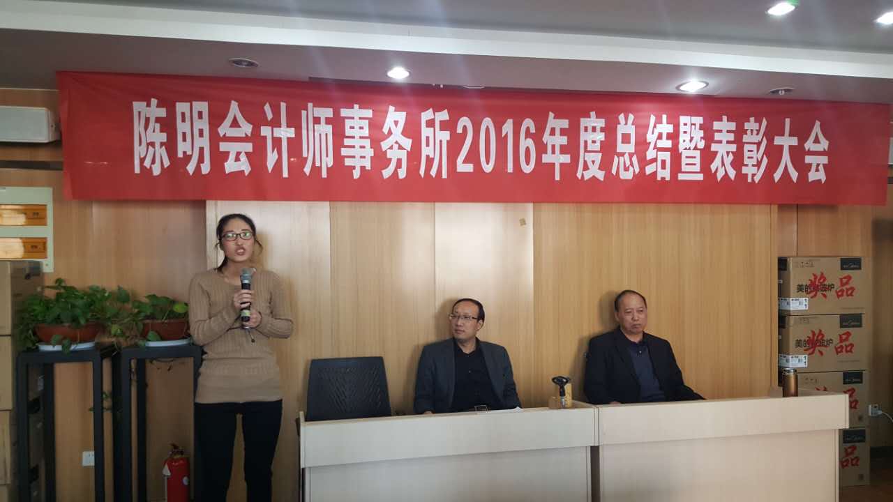 2月11日上午,陳明會計師事務(wù)所全體員工在會議室隆重召開公司2016年度工作總結(jié)暨表彰大會,大會由史志忠經(jīng)理主持。
